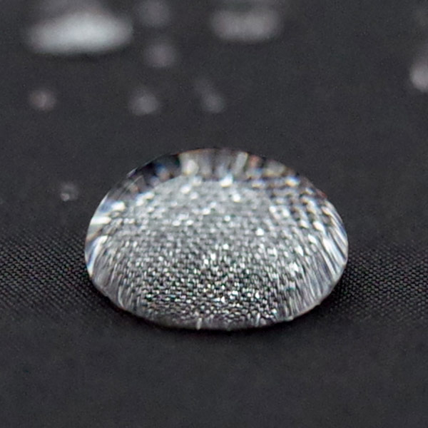 Nu-Rain(ヌレイン)の生地は、ノンコーティングでありながら、 1,000mmH2O以上の耐水性があります。通常は、溶剤を使 用したコーティングなどによって撥水させていますが、織技術と 染工場の後加工技術によって、溶剤を使用しない高耐水圧 撥水素材を実現しました。