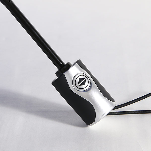 3)グリップは滑りにくいラバーで、自動開閉のワンタッチボタン付きです。