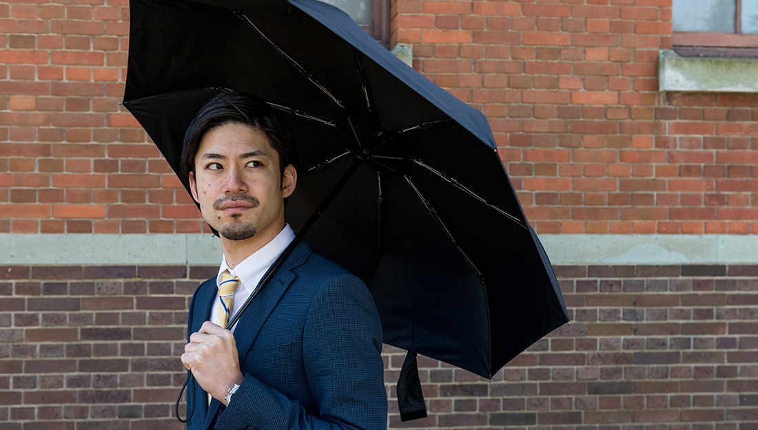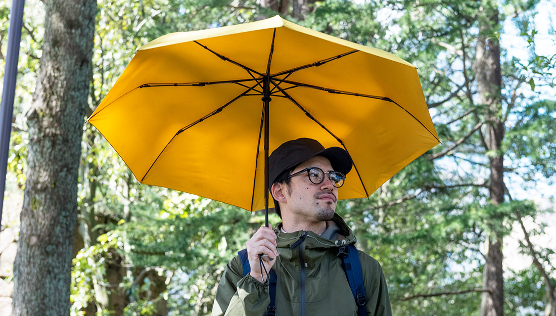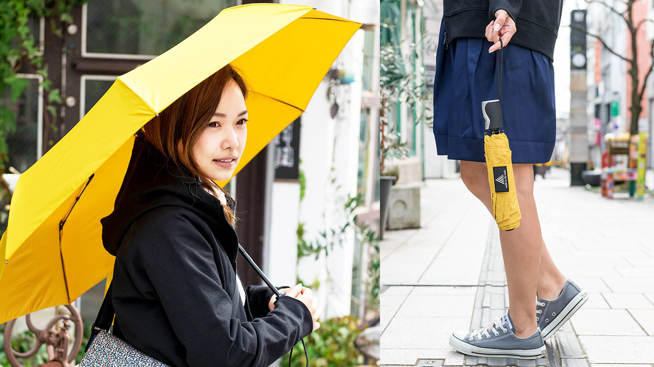 カバンへすぐに収納できる超撥水折りたたみ傘「Nu-Rain(ヌレイン)」。